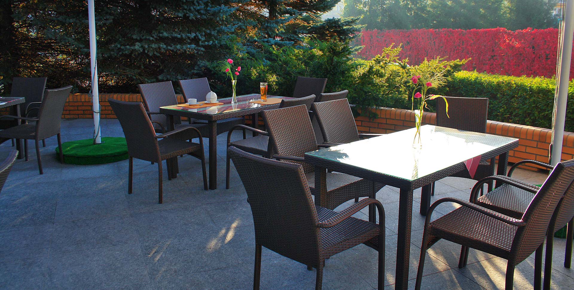 Terassin välittömässä läheisyydessä sijaitsevan ravintolan sisätilat ovat ilmastoituja, jotta